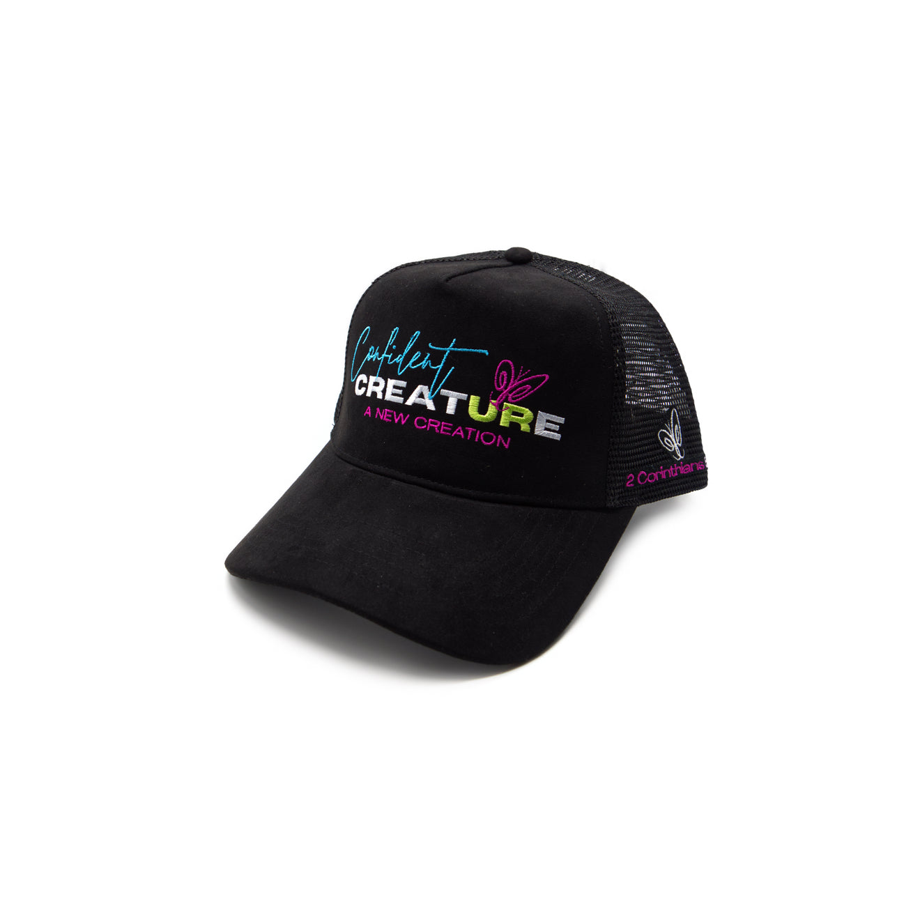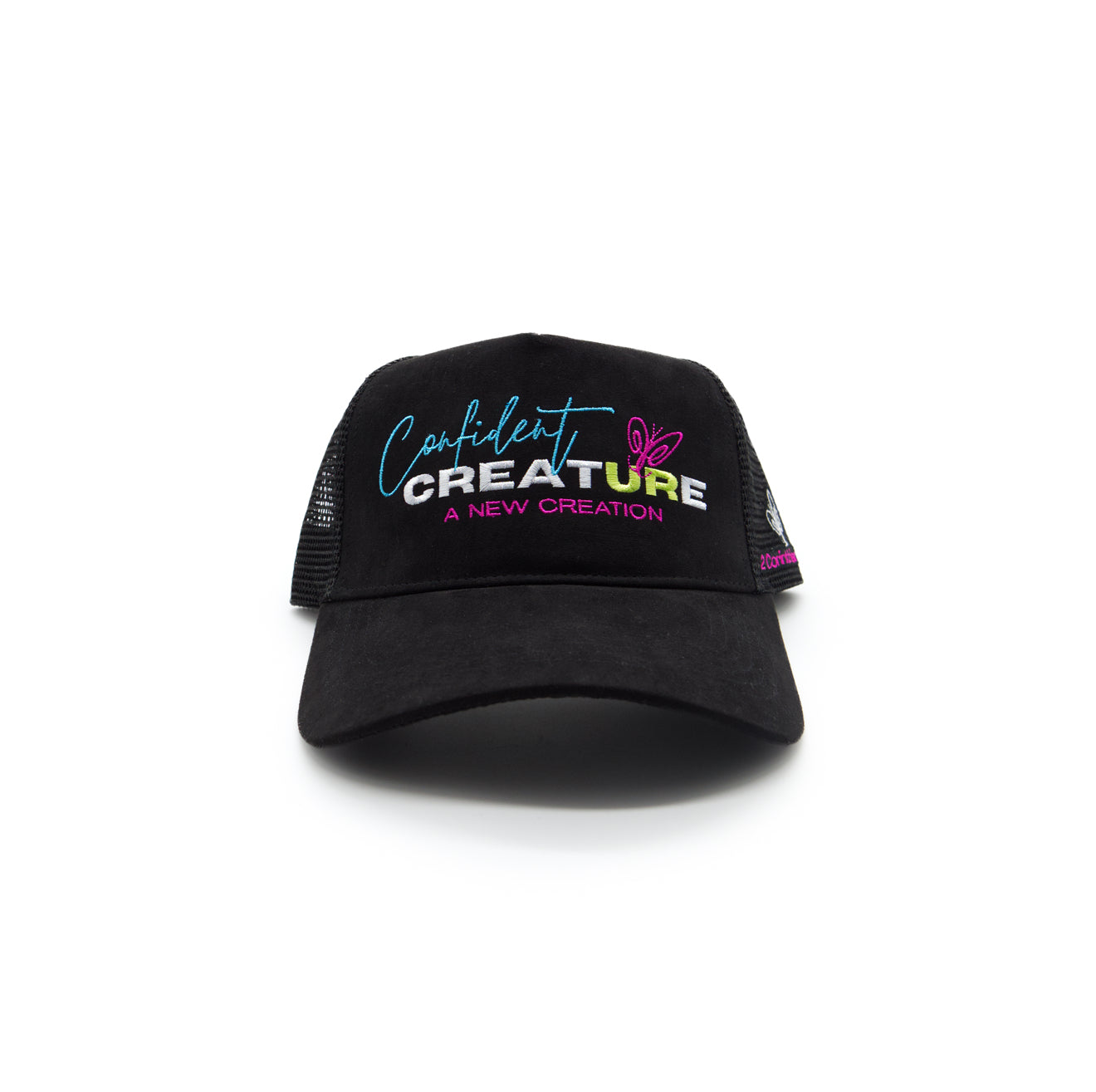 Step out bold and unapologetic in the Confident Creature Trucker Hat where style meets self-belief. This colorful, embroidered statement piece was made for the ones who walk in purpose and confidence every day.